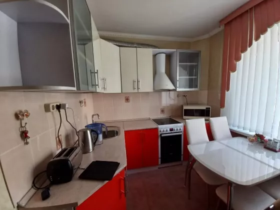 В квартире произведен хороший ремонт. Просторная кухня со встроенной мебелью и бытовой техникой, пол отделан керамогранитом. Санузел совмещен (кафель). Заменена вся сантехника, электрика, приборы отопления. Удобная планировка, есть небольшая гардеробная. Входная и м/к двери заменены. В квартире остается вся мебель и бытовая техника.